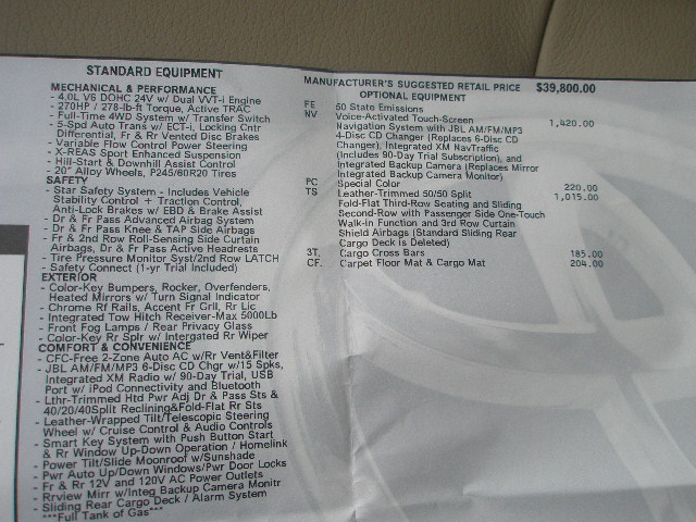 | Engine: | 4.0L V6 VVT-i 270HP |