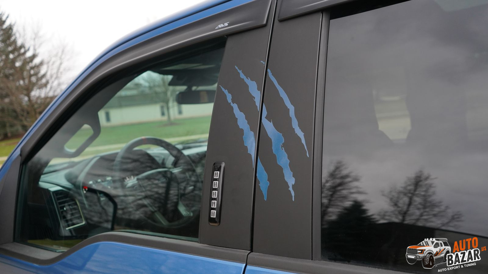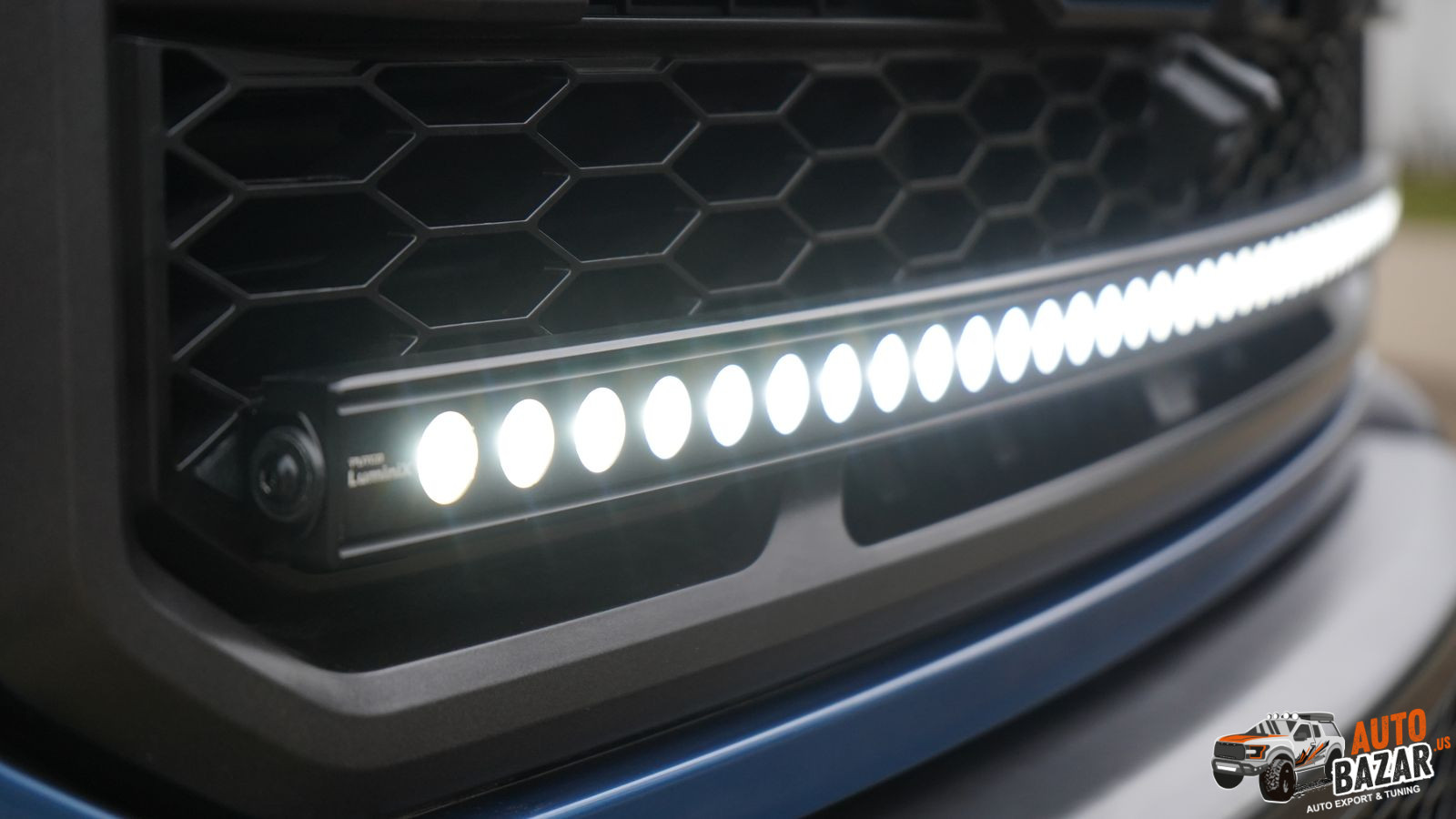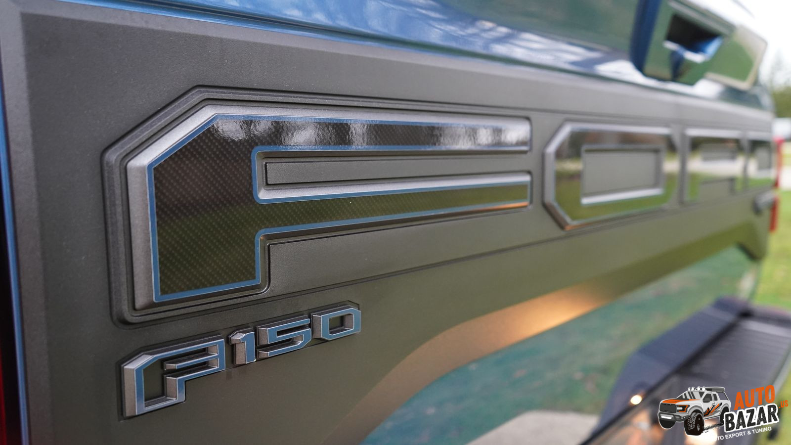 Окантовка надписи синего цвета спереди и сзади